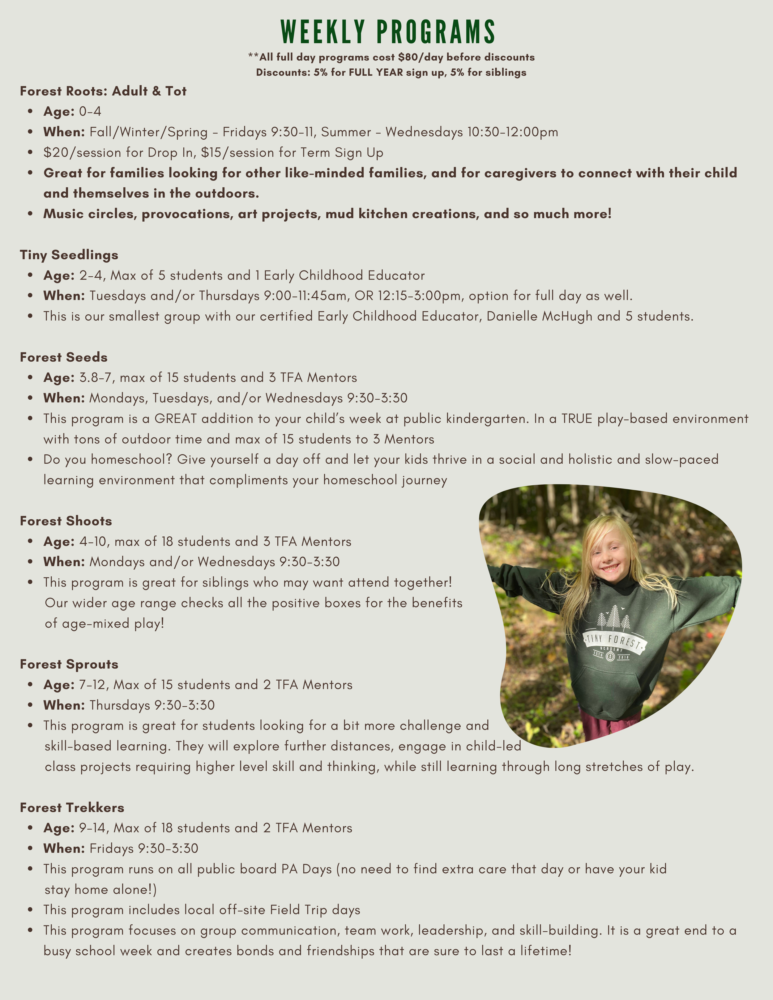 Please note - when registration open son June 1st for the new school year, you cannot register for any programs other than Fall OR Full Year, as we provide priority enrolment to our Fall Term families for Winter, and then Spring Term.